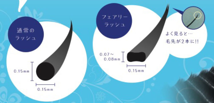 太さは0.15mmですが平たくなっている為、通常の0.15mmより軽く、自まつ毛のような軽さなのに濃く見えます。