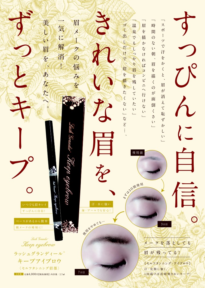 眉デザイン&ケア+キープアイブロウはセルフタンニング成分で染着してお仕上げします。ノーメイクでも眉が残る♪